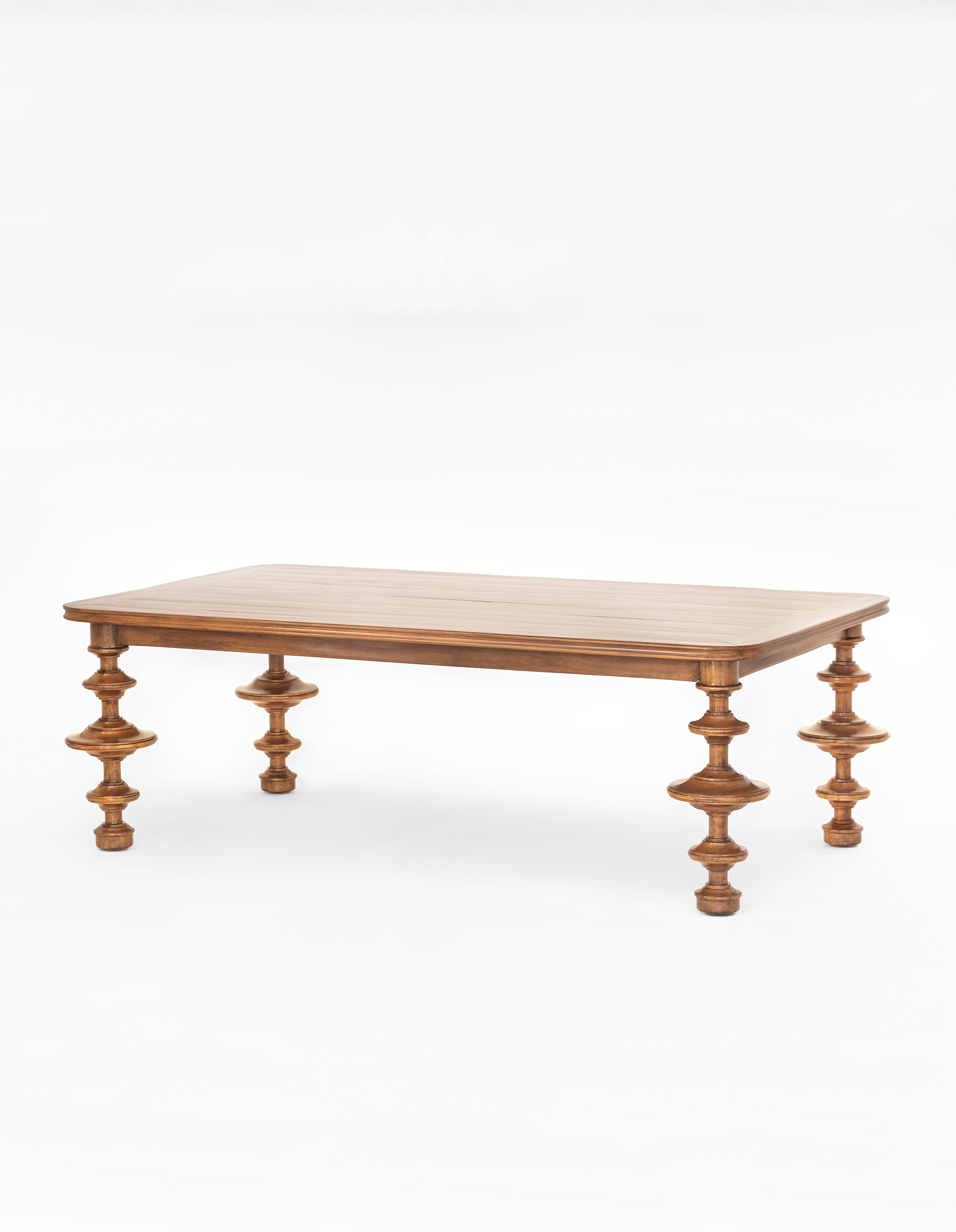 This table is inspired by the turned “Bobbin” technique of the 17th century which was employed to reduce the bulkiness of the furniture and named for the wooden spools used for storing thread.